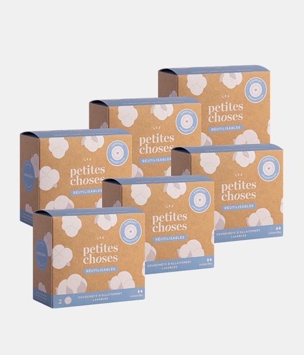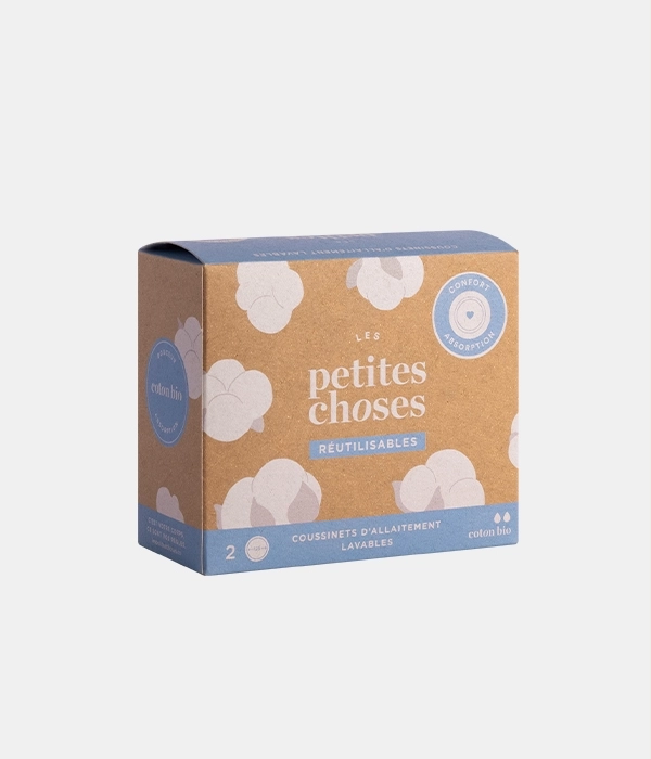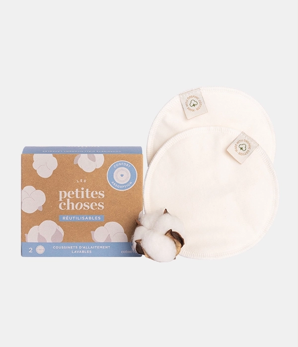 - Coussinets d'allaitement lavables en coton bio certifiés GOTS, sans chlore ni parfum, ni perturbateurs endocriniens ajoutés