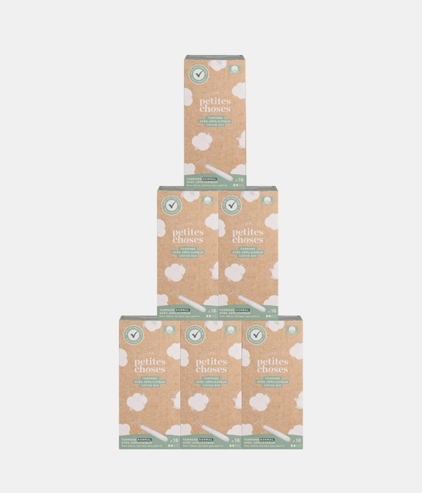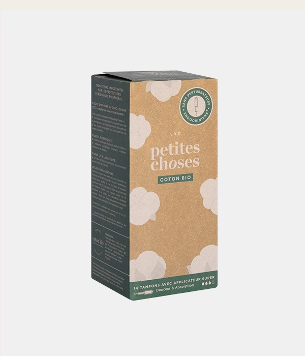 • Tampons en coton bio certifié GOTS avec applicateur