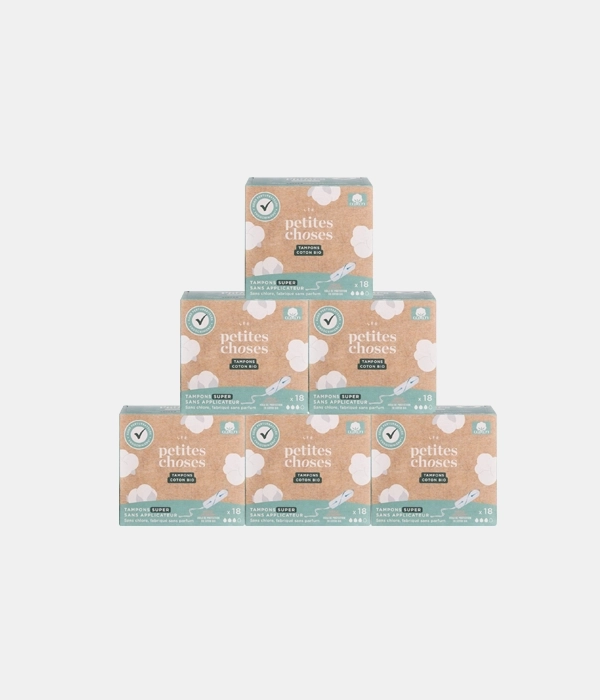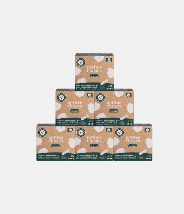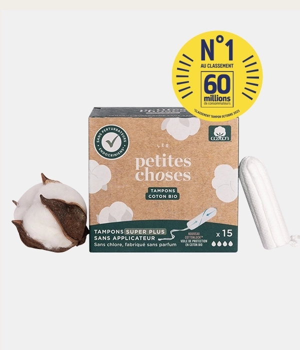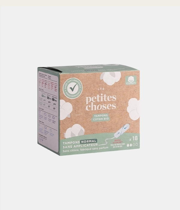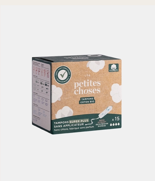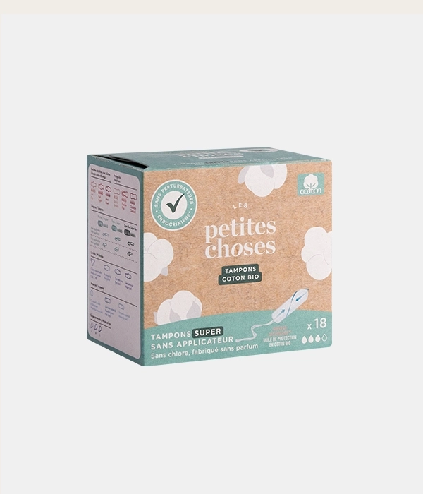• Tampons sans applicateur en coton bio certifié GOTS